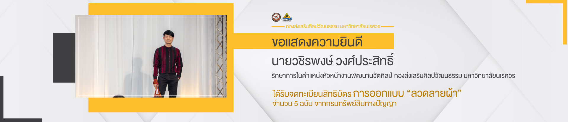 ได้รับจดทะเบียนสิทธิบัตร ผลงานการออกแบบ “ลวดลายผ้า”