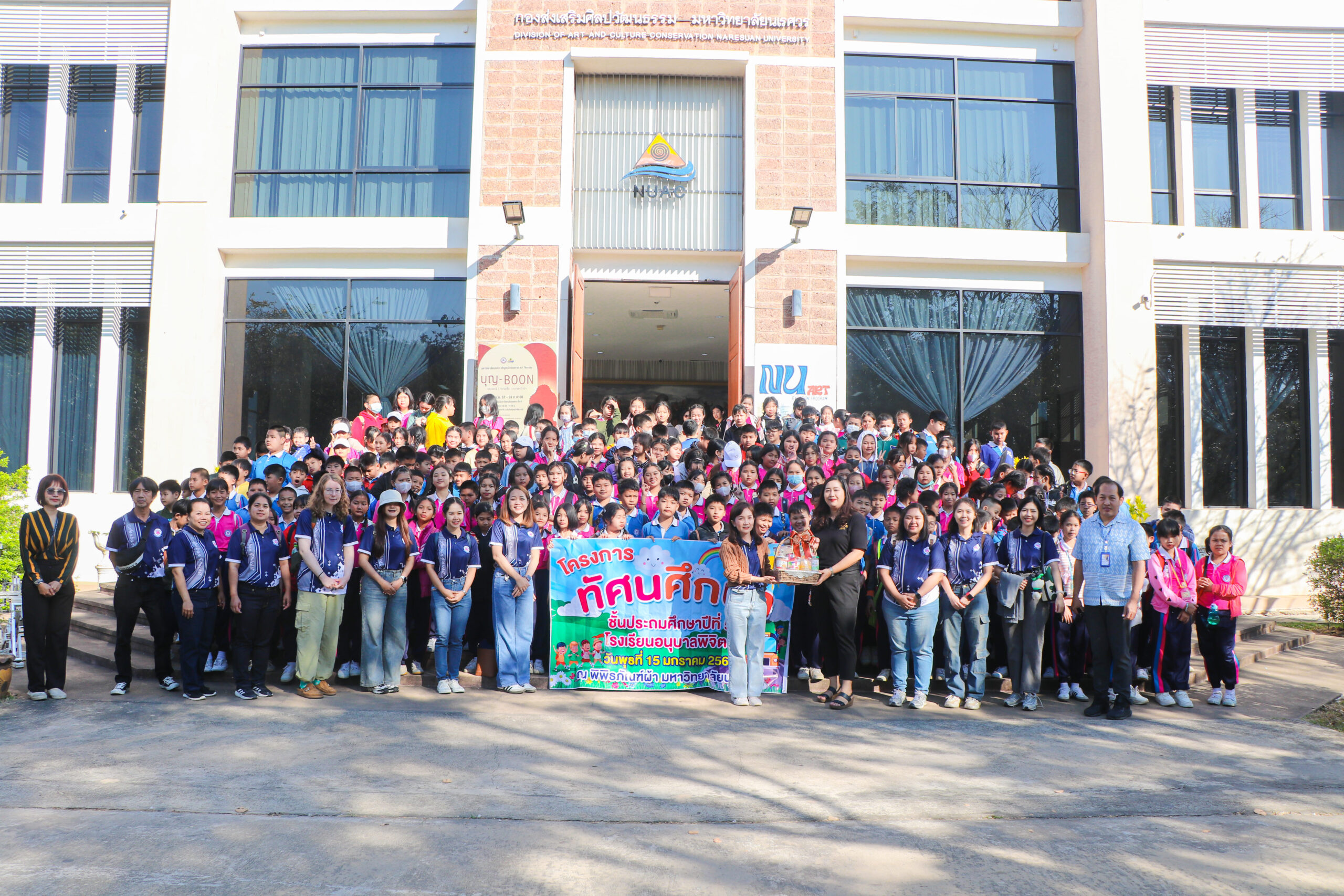 เมื่อวันที่ 15 มกราคม 2568 กองส่งเสริมศิลปวัฒนธรรม ให้การต้อนรับคณะครู และนักเรียนชั้นประถมศึกษาปีที่ 5 โรงเรียนอนุบาลพิจิตร จำนวน 239 คน ในการเข้าสักการะสมเด็จพระนเรศวรมหาราช และเข้าชมเส้นทางการเรียนรู้ ได้แก่ นิทรรศการ Seasons Change : ฤดูกาลแห่งความสุข นิทรรศการเชิดชูศิลป์ศิลปินแห่งชาติ x มหาวิทยาลัยนเรศวร นิทรรศการ Art Therapy (บุญ – Boon) ประเพณี | ความเชื่อ | ความศรัทธา นำเสนอคติธรรม แง่คิด และสิ่งดีงามจากความเชื่อ ความศรัทธาในพระพุทธศาสนา ซึ่งจัดแสดง ณ หอศิลป์มหาวิทยาลัยนเรศวร พร้อมเข้าชมเสื้อผ้าเครื่องแต่งกายของกลุ่มชาติพันธุ์และฉลองพระองค์ในสมเด็จพระพันปีหลวง ภายในห้องนิทรรศการจิตรลดา พร้อมเข้าชมนิทรรศการ “ย่าม” ที่จัดแสดงความงามแห่งเครื่องพกพาจากหลากหลายชาติพันธุ์