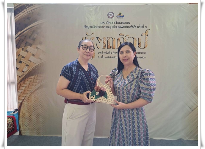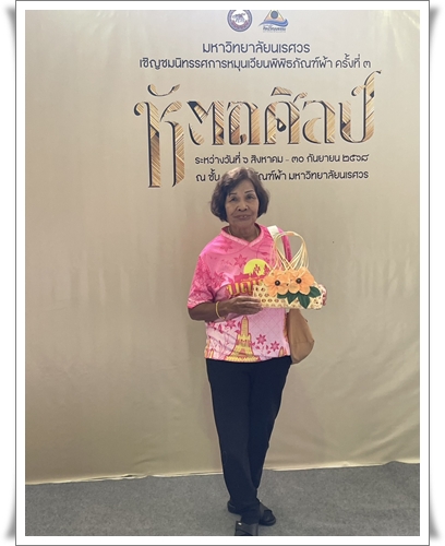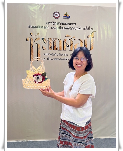 ให้การต้อนรับนำชมสมาชิกกลุ่มวิสาหกิจชุมชนและบุคลากรของวิทยาลัยชุมชนตราด จังหวัดตราด จำนวน 16 คน ในการเข้าเยี่ยมพิพิธภัณฑ์ผ้า ซึ่งจัดแสดงเสื้อผ้าเครื่องแต่งกายของกลุ่มชาติพันธุ์ต่าง ๆ ที่มีลวดลายและเอกลักษณ์ที่สวยงาม รวมถึงฉลองพระองค์ของสมเด็จพระนางเจ้าสิริกิติ์ พระบรมราชินีนาถ พระบรมราชชนนีพันปีหลวง ภายในห้องนิทรรศการจิตรลดา พร้อมร่วมทำกิจกรรม “เพียรสาน งานศิลป์” ตกแต่งตะกร้าจักสานด้วยเศษผ้า ที่ช่วยเพิ่มมูลค่าและสร้างสรรค์ผลงานจากสิ่งของเหลือใช้ให้เกิดประโยชน์ใหม่ ณ พิพิธภัณฑ์ผ้า มหาวิทยาลัยนเรศวร