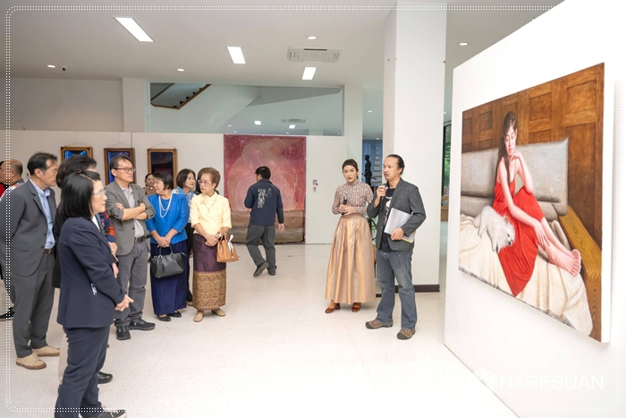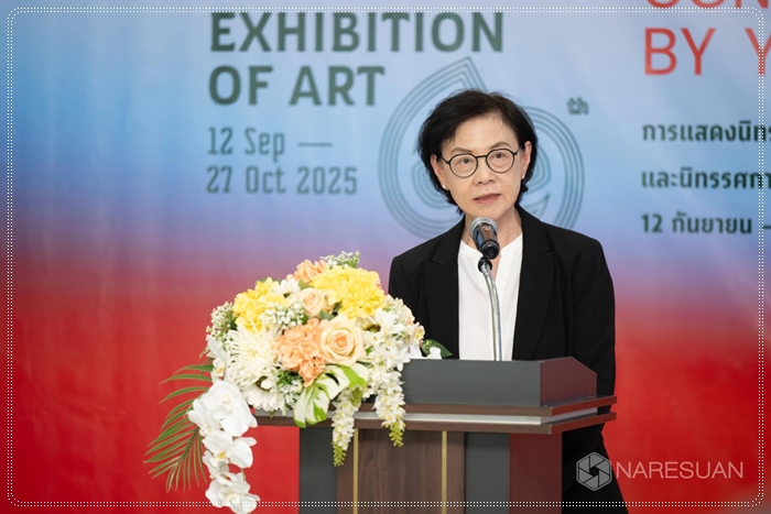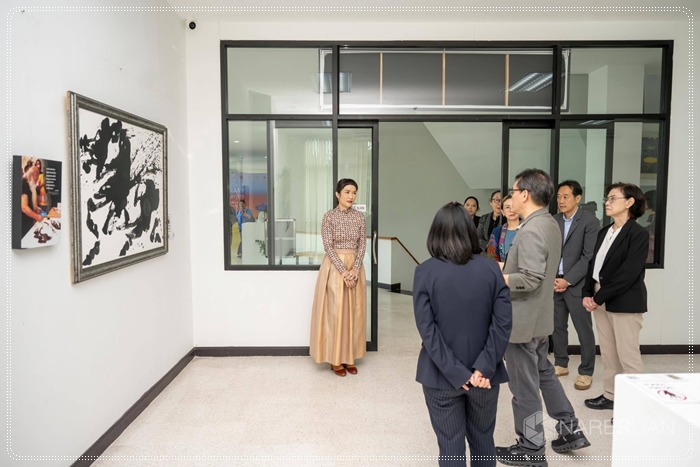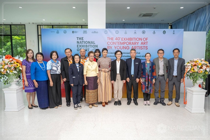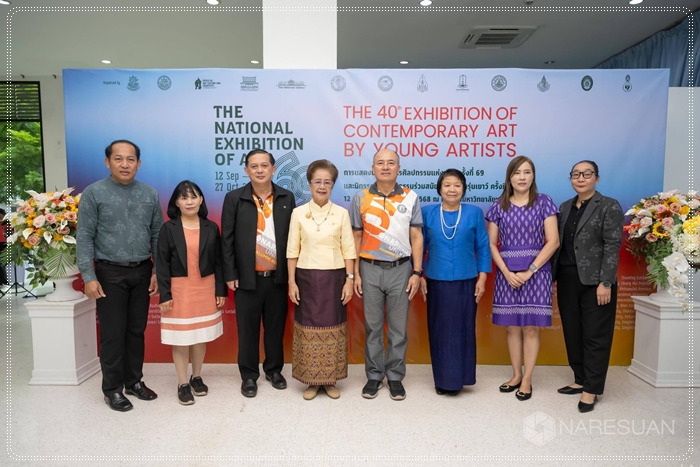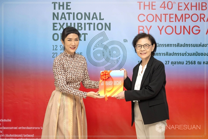 เมื่อวันที่ 10 กันยายน 2568 รองศาสตราจารย์ ดร.ศรินทร์ทิพย์ แทนธานี รักษาราชการแทนอธิการบดีมหาวิทยาลัยนเรศวร เป็นประธานในพิธีเปิดนิทรรศการศิลปกรรมแห่งชาติ ครั้งที่ 69 และ นิทรรศการศิลปกรรมร่วมสมัยของศิลปินรุ่นเยาว์ ครั้งที่ 40 ณ หอศิลป์มหาวิทยาลัยนเรศวร โดยมี ดร.จรัสดาว คงเมือง รองอธิการบดีฝ่ายพัฒนานิสิต ศิษย์เก่า และศิลปวัฒนธรรม มหาวิทยาลัยนเรศวร กล่าวต้อนรับ พร้อมด้วยรองศาสตราจารย์วิรัญญา จิราธิกิตติ์ ผู้อำนวยการหอศิลป์ มหาวิทยาลัยศิลปากร กล่าวรายงานวัตถุประสงค์ของการจัดงาน