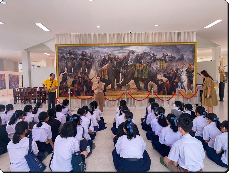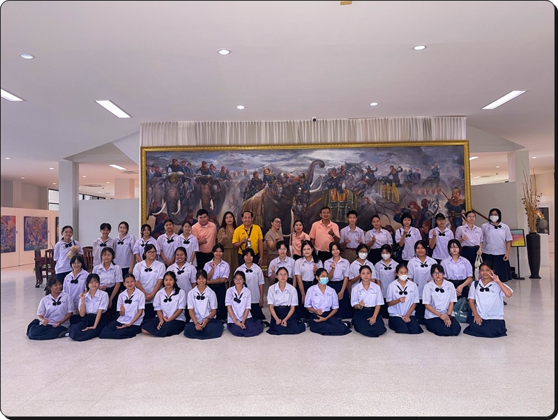 กองส่งเสริมศิลปวัฒนธรรม ให้การต้อนรับนำชมคณะครู และนักเรียน โรงเรียนเฉลิมขวัญสตรี ในการเยี่ยมชมแหล่งเรียนรู้ศิลปวัฒนธรรมภายในมหาวิทยาลัย เมื่อวันที่ 6 ตุลาคม 2568 บุคลากรกองส่งเสริมศิลปวัฒนธรรม ให้การต้อนรับคณะครู และนักเรียน มัธยมศึกษาปีที่ 1 – 6 โรงเรียนเฉลิมขวัญสตรี จำนวน 47 คน ในการเยี่ยมชมแหล่งเรียนรู้ศิลปวัฒนธรรมภายใน มหาวิทยาลัย การศึกษาดูงานครั้งนี้ เด็ก ๆ ได้เข้าสักการะสมเด็จพระนเรศวรมหาราช (องค์จำลอง)