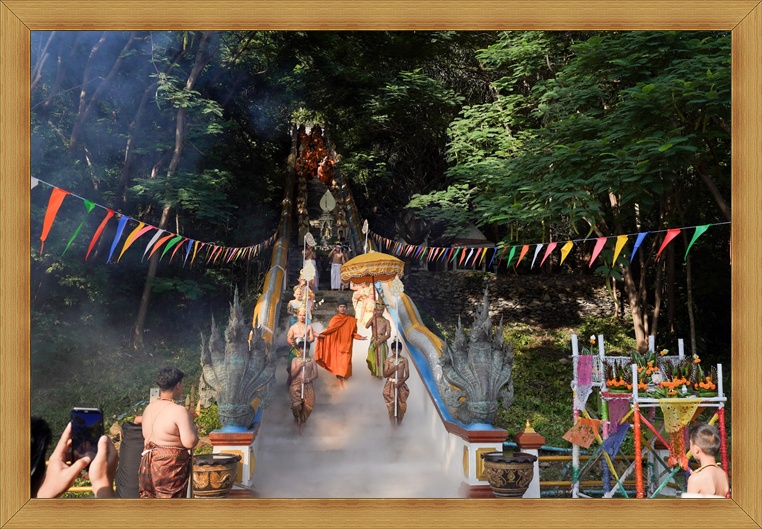 4. พิธีตักบาตรเทโว ขบวนจะเริ่มโดยมีพระพุทธรูปนำหน้า ตามด้วยขบวนพระสงฆ์จำนวนมากเดินตามลงมา พุทธศาสนิกชนจะบรรจงตักบาตรข้าวสาร อาหารแห้ง และข้าวต้มลูกโยน เพื่อถวายแด่พระสงฆ์ที่เดินเรียงแถวลงมา