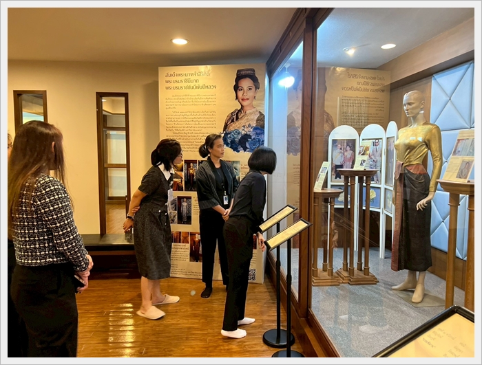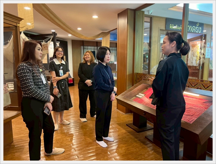 กองส่งเสริมศิลปวัฒนธรรม ให้การต้อนรับนำชมเส้นทางการเรียนรู้มหาวิทยาลัยนเรศวร เมื่อวันที่ 21 พฤศจิกายน 2568 บุคลากรกองส่งเสริมศิลปวัฒนธรรม ให้การต้อนรับผู้ช่วยศาสตราจารย์ ดร.พันธ์ทิพย์ หินหุ้มเพ็ชร รองคณบดีฝ่ายวิชาการและประกันคุณภาพการศึกษา คณะสาธารณสุขศาสตร์ มหาวิทยาลัยนเรศวร ในการเยี่ยมชมพิพิธภัณฑ์ผ้า ซึ่งจัดแสดงเสื้อผ้าเครื่องแต่งกายของกลุ่มชาติพันธุ์ต่าง ๆ ที่มีลวดลายและเอกลักษณ์ที่สวยงาม รวมถึงชมฉลองพระองค์ของสมเด็จพระพันปีหลวงภายในห้องนิทรรศการจิตรลดา เพื่อส่งเสริมให้เกิดวัฒนธรรมการเรียนรู้ผ่านพิพิธภัณฑ์และแหล่งเรียนรู้ของมหาวิทยาลัยในมิติของความยั่งยืนต่อไป