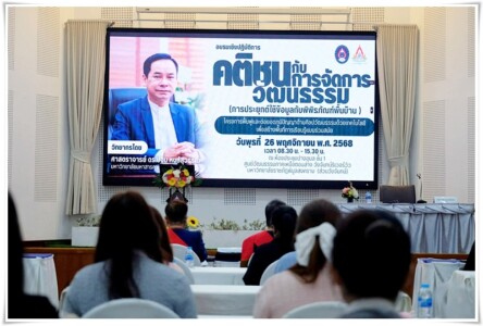 เมื่อวันพุธที่ 26 พฤศจิกายน พ.ศ.2568 นางศิริมาศ เสนารักษ์ รักษาการในตำแหน่งผู้อำนวยการกองส่งเสริมศิลปวัฒนธรรม และ นายวชิรพงษ์ วงศ์ประสิทธิ์ รักษาการในตำแหน่งหัวหน้างานพัฒนานวัตศิลป์ เข้าร่วมกิจกรรมอบรมเชิงปฏิบัติการ “คติชนกับการจัดการวัฒนธรรม” ภายใต้โครงการฟื้นฟูและต่อยอดภูมิปัญญาด้านศิลปวัฒนธรรมด้วยเทคโนโลยีเพื่อสร้างพื้นที่การเรียนรู้แบบร่วมสมัย และเข้าเยี่ยมชมพิพิธภัณฑ์เมืองพิษณุโลก ณ ห้องปางอุบล ศูนย์วัฒนธรรมภาคเหนือตอนล่าง มหาวิทยาลัยราชภัฏพิบูลสงคราม