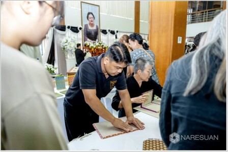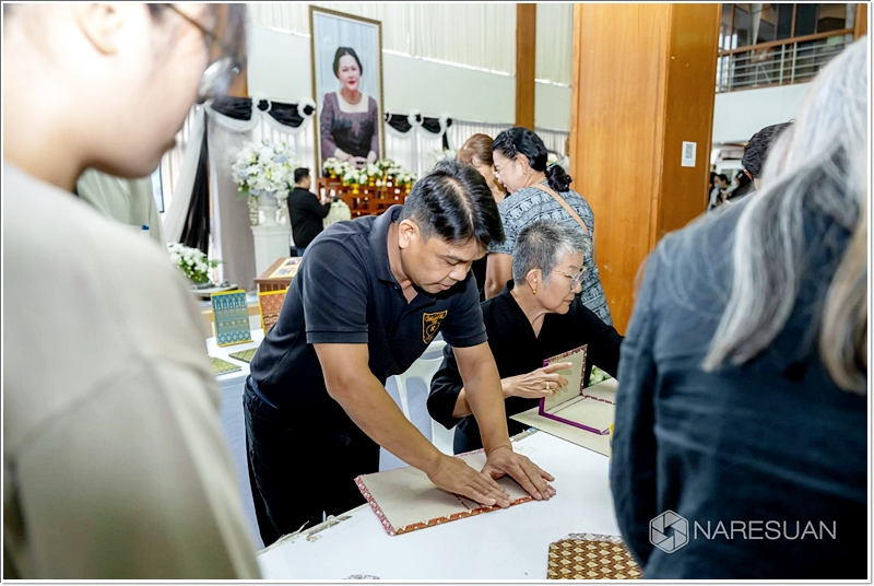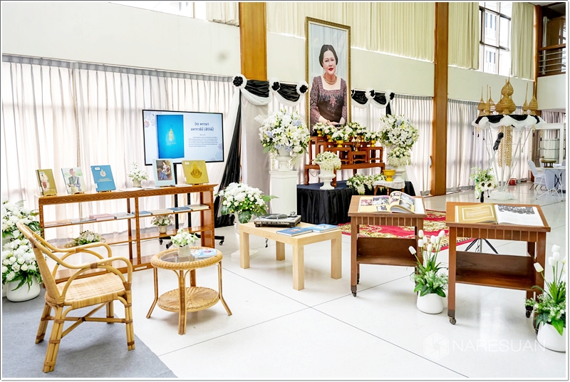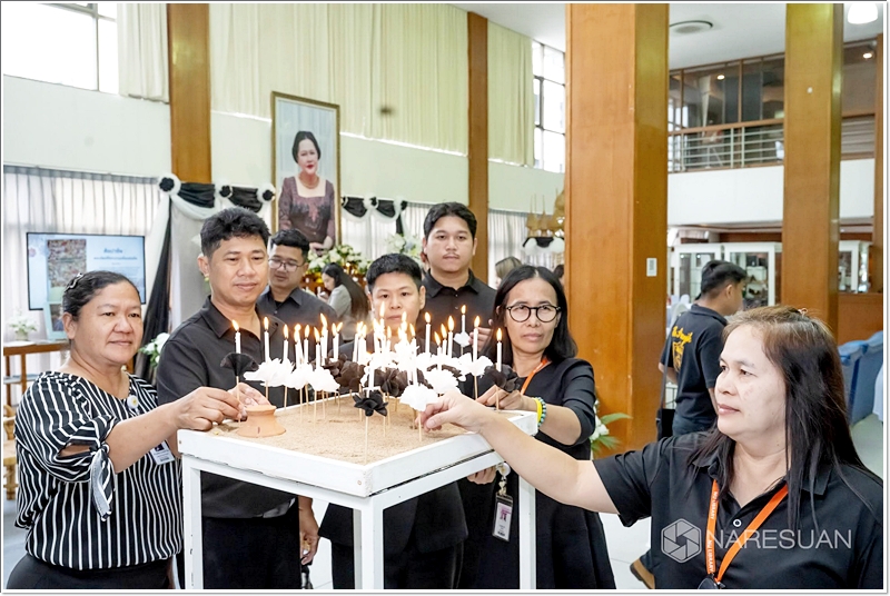 โดยนางศิริมาศ เสนารักษ์ รักษาการในตำแหน่งผู้อำนวยการกองส่งเสริมศิลปวัฒนธรรม จุดธูปเทียนเครื่องทองน้อย และถวายพวงมาลาเบื้องหน้าพระบรมฉายาลักษณ์สมเด็จพระนางเจ้าสิริกิติ์ พระบรมราชินีนาถ พระบรมราชชนนีพันปีหลวง พร้อมด้วยคณะบริหาร บุคลากร นิสิตมหาวิทยาลัยนเรศวร และประชาชนทั่วไปกว่า 100 คน ร่วมจุดเทียนถวายอาลัยด้วยความอ่อนน้อมและระลึกถึงพระมหากรุณาธิคุณอันยิ่งใหญ่ที่ทรงมีต่อชาติบ้านเมือง ณ พิพิธภัณฑ์ผ้า มหาวิทยาลัยนเรศวร ทั้งนี้ มหาวิทยาลัยนเรศวร จัดกิจกรรม Workshop “ยาดมสมุนไพรเต็มปอด” โดยกองส่งเสริมศิลปวัฒนธรรม และกิจกรรม Workshop “สมุดทำมือ ร้อยดวงใจอาลัยแม่ของแผ่นดิน” โดยสำนักหอสมุดมหาวิทยาลัยนเรศวร