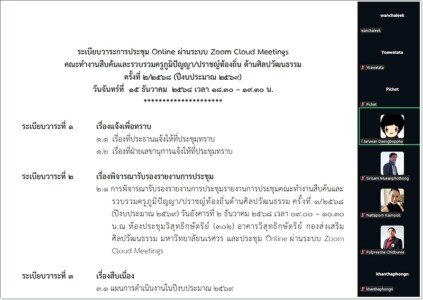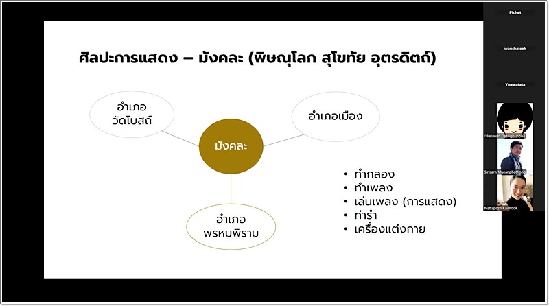 ประชุมคณะทำงานสืบค้นและรวบรวมครูภูมิปัญญา/ปราชญ์ท้องถิ่น ด้านศิลปวัฒนธรรม ครั้งที่ 2/2568 เมื่อวันที่ 15 ธันวาคม 2568 กองส่งเสริมศิลปวัฒนธรรม จัดประชุมคณะทำงานสืบค้นและรวบรวมครูภูมิปัญญา/ปราชญ์ท้องถิ่น ด้านศิลปวัฒนธรรม ครั้งที่ 2/2568 ผ่านระบบ Zoom Cloud Meetings โดยมีดร.จารุวรรณ แดงบุบผา ผู้ช่วยอธิการบดีฝ่ายกิจการนิสิต มหาวิทยาลัยนเรศวร เป็นประธานในการประชุม พร้อมด้วยคณะกรรมการ เพื่อวางแผนการดำเนินงานในการสืบค้น รวบรวมข้อมูล และจัดทำทะเบียนครูภูมิปัญญาหรือปราชญ์ท้องถิ่นด้านศิลปวัฒนธรรม ในการเผยแพร่ข้อมูลครูภูมิปัญญาหรือปราชญ์ท้องถิ่นด้านศิลปวัฒนธรรม ให้ผู้ใช้งาน/ผู้รับบริการสามารถเข้าถึงหรือใช้ประโยชน์จากฐานข้อมูลได้อย่างสะดวกและมีประสิทธิภาพ อีกทั้งยังสามารถนำข้อมูลไปต่อยอดในรูปแบบของโครงการวิจัยต่อไป