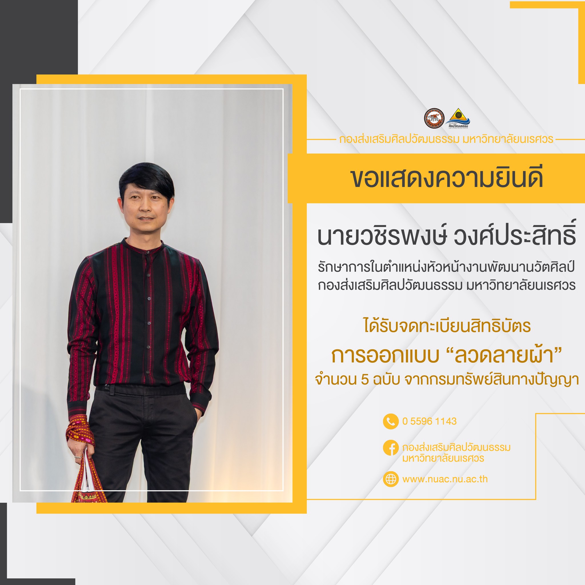 ได้รับจดทะเบียนสิทธิบัตร ผลงานการออกแบบ “ลวดลายผ้า”
