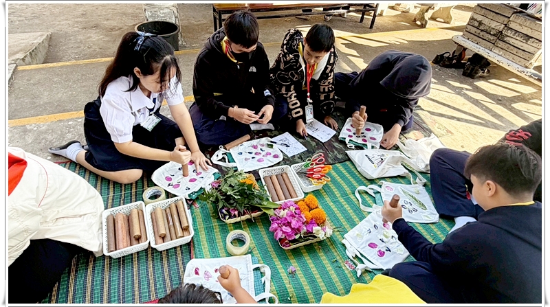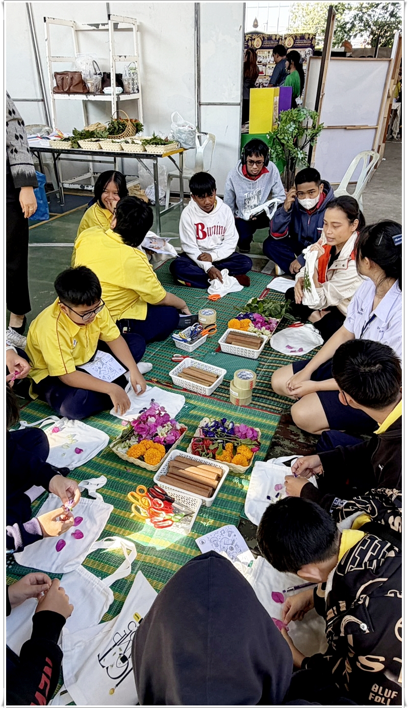 มหาวิทยาลัยนเรศวร ออกบูธจัดกิจกรรมเผยแพร่องค์ความรู้ด้านศิลปวัฒนธรรม : กิจกรรมทุบดอกไม้ลายกระเป๋า และกิจกรรมพิมพ์ลายใบไม้ลงกระเป๋า เมื่อวันที่ 13 มกราคม 2569 กองส่งเสริมศิลปวัฒนธรรม ร่วมออกบูธจัดกิจกรรมเผยแพร่องค์ความรู้ด้านศิลปวัฒนธรรม : กิจกรรมทุบดอกไม้ลายกระเป๋า และกิจกรรมพิมพ์ลายใบไม้ลงกระเป๋า หนึ่งในกิจกรรมของเส้นทางการเรียนรู้มหาวิทยาลัยนเรศวร