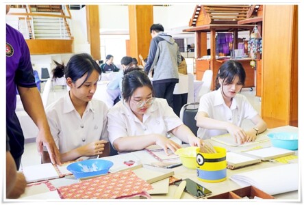 ภาพบรรยากาศกิจกรรม Workshop ถวายความอาลัยแด่สมเด็จพระนางเจ้าสิริกิติ์ พระบรมราชินีนาถ พระบรมราชชนนีพันปีหลวง “ปักผ้า” เดินเส้นลวดลาย ครั้งที่ 2 “สมุดทำมือ ร้อยดวงใจอาลัยแม่ของแผ่นดิน” โดยสำนักหอสมุดมหาวิทยาลัยนเรศวร ทุกวันศุกร์ จำนวน 20 คน เวลา : 13.30 – 16.00 น. สถานที่ : ชั้น 1 อาคารพิพิธภัณฑ์ผ้า มหาวิทยาลัยนเรศวร