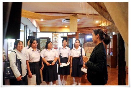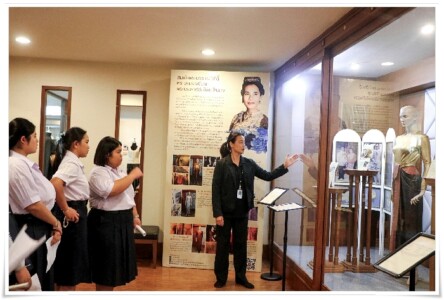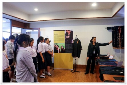 และเข้าเยี่ยมชมพิพิธภัณฑ์ผ้า จัดแสดงเสื้อผ้าเครื่องแต่งกายของกลุ่มชาติพันธุ์ต่าง ๆ ที่มีลวดลายและเอกลักษณ์ที่สวยงาม รวมถึงชมฉลองพระองค์ของสมเด็จพระพันปีหลวงภายในห้องนิทรรศการจิตรลดา เพื่อส่งเสริมให้เกิดวัฒนธรรมการเรียนรู้ผ่านพิพิธภัณฑ์และแหล่งเรียนรู้ของมหาวิทยาลัยในมิติของความยั่งยืนต่อไป