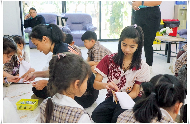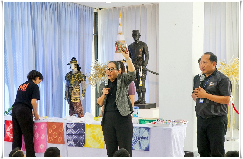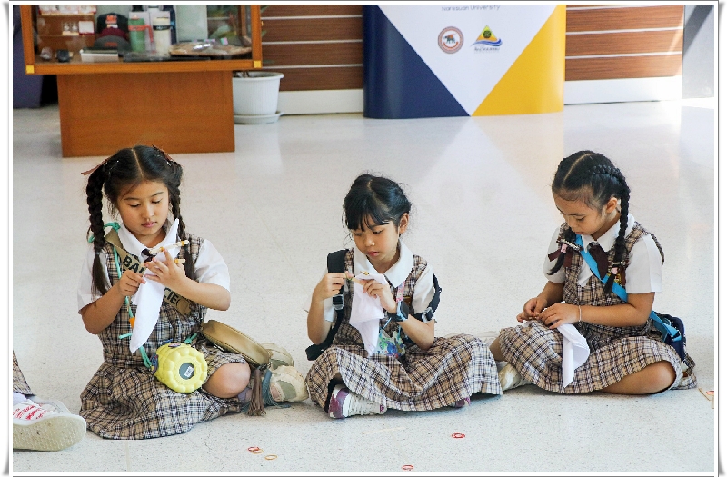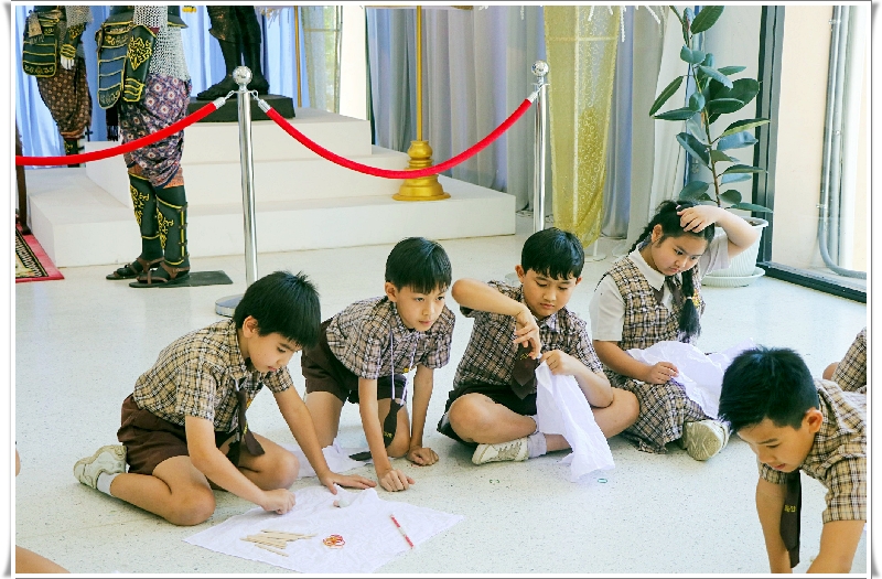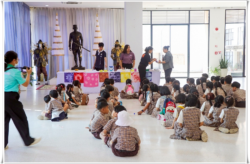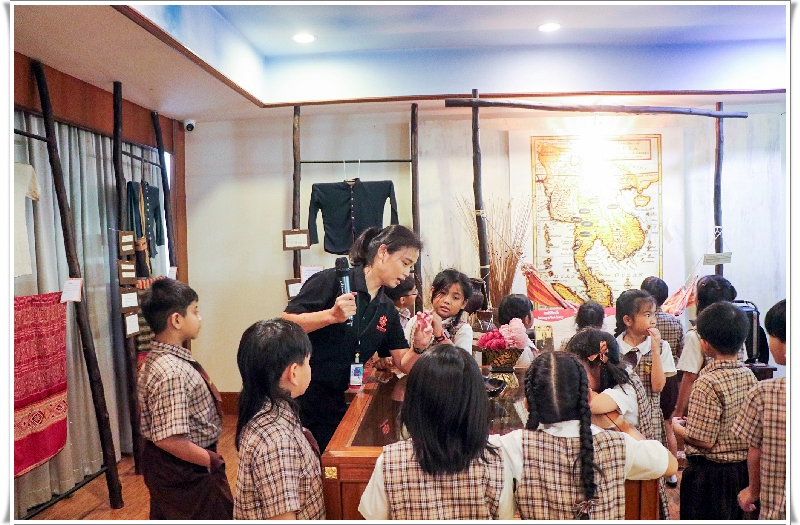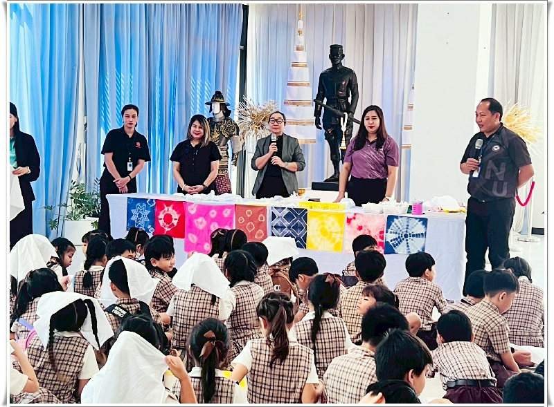 พร้อมเข้าชมเครื่องแต่งกายของกลุ่มชาติพันธุ์และฉลองพระองค์ในสมเด็จพระบรมราชชนนีพันปีหลวง ภายในห้องนิทรรศการจิตรลดา นอกจากน้อง ๆ จะได้เยี่ยมชมนิทรรศการแล้ว ยังได้ร่วมกิจกรรม “ผ้าเช็ดหน้ามัดย้อมจากสีธรรมชาติ” ซึ่งเป็นกิจกรรมของเส้นทางการเรียนรู้ มหาวิทยาลัยนเรศวร เพื่อเสริมสร้างประสบการณ์ด้านศิลปะและวัฒนธรรมการแต่งกาย ที่ช่วยพัฒนาให้เกิดความรู้และประสบการณ์นอกห้องเรียน อันเป็นสิ่งที่สำคัญไม่แพ้การเรียนรู้จากตำรา ณ พิพิธภัณฑ์ผ้า มหาวิทยาลัยนเรศวร