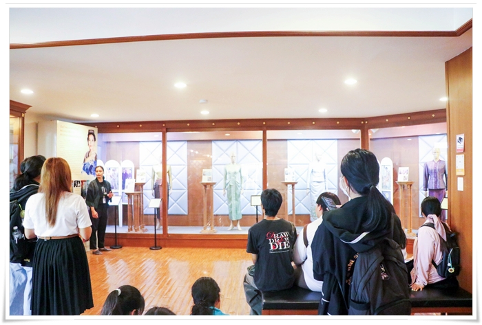ในการเข้าชมอัตลักษณ์เสื้อผ้าเครื่องแต่งกายของกลุ่มชาติพันธุ์และฉลองพระองค์ในสมเด็จพระพันปีหลวง ภายในห้องนิทรรศการจิตรลดา เพื่อเสริมสร้างประสบการณ์ตรงให้กับนักเรียนที่เพิ่มเติมจากการเรียนในห้องเรียน และพัฒนาให้นักเรียนมีความรู้และประสบการณ์อย่างกว้างขวาง ณ พิพิธภัณฑ์ผ้า มหาวิทยาลัยนเรศวร