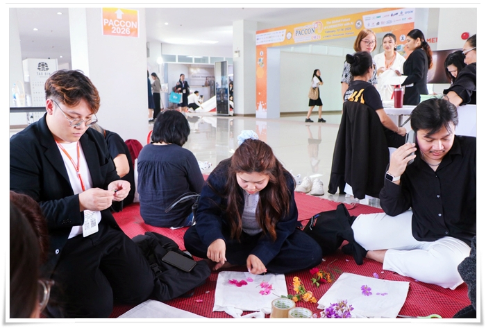 และจัดกิจกรรมเผยแพร่องค์ความรู้ด้านศิลปวัฒนธรรม : ทุบดอกไม้ลายกระเป๋า ภายในงานประชุมวิชาการนานาชาติ Pure and Applied Chemistry International Conference 2026 (PACCON 2026) จัดโดยคณะวิทยาศาสตร์ มหาวิทยาลัยนเรศวร เพื่อให้ผู้เข้าร่วมกิจกรรมได้รับความรู้และประสบการณ์จริง อีกทั้งยังเป็นการส่งเสริมความคิดสร้างสรรค์ของผู้เข้าร่วมกิจกรรม และปลูกฝังการรักและการใช้ประโยชน์จากดอกไม้ พืชพรรณด้วย ณ ศูนย์แสดงนิทรรศการและการจัดประชุมนานาชาติ มหาวิทยาลัยนเรศวร