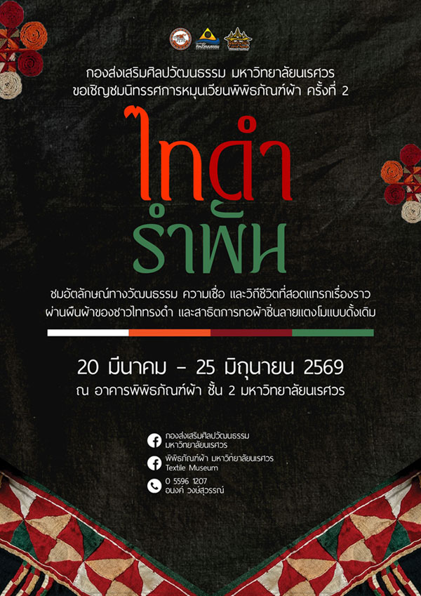 สถานที่ : ณ อาคารพิพิธภัณฑ์ผ้า ชั้น 2 มหาวิทยาลัยนเรศวร