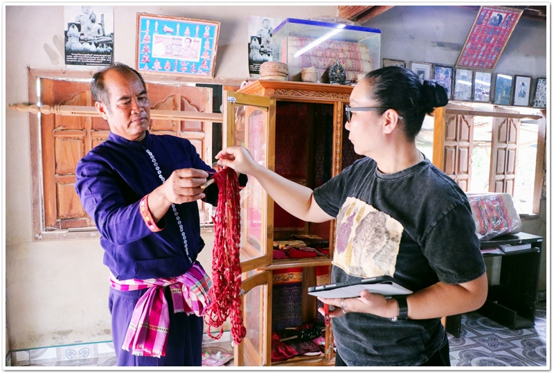 เพื่อรวบรวมข้อมูลเชิงลึกในหลากหลายมิติ ทั้งประวัติศาสตร์ความเป็นมา ภาษา ความเชื่อ รวมถึงศิลปหัตถกรรมที่โดดเด่นเป็นเอกลักษณ์ โดยเฉพาะ “ผ้าทอไทครั่ง” ที่มีชื่อเสียงด้านเทคนิคการทอ การย้อมสีธรรมชาติจากครั่ง และลวดลายโบราณที่แฝงไปด้วยคติธรรมและวิถีชีวิต ซึ่งล้วนเป็นมรดกทางภูมิปัญญาที่ส่งต่อกันมาหลายชั่วอายุคน ทั้งนี้ ข้อมูลที่ได้จากการลงพื้นที่ศึกษาชุมชนไทครั่ง จะถูกนำไปประมวลผล จัดหมวดหมู่ และนำเข้าสู่ระบบฐานข้อมูลดิจิทัลส่วนกลางที่เว็บไซต์ https://textile.nuac.nu.ac.th/th ซึ่งจะเปิดโอกาสให้ภาคประชาชน ภาคธุรกิจ และหน่วยงานต่างๆ ทั้งในและต่างประเทศ สามารถนำข้อมูลไปใช้ประโยชน์ในการขับเคลื่อนเศรษฐกิจสร้างสรรค์ของไทยให้ก้าวไกลสู่เวทีสากลต่อไป