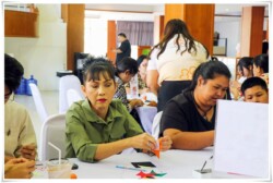 ภาพบรรยากาศกิจกรรม Art Therapy ครั้งที่ 3 กิจกรรม “ การต่อผ้าพื้นฐาน (Patchwork) กับผ้าชาติพันธุ์ไทดำ ”