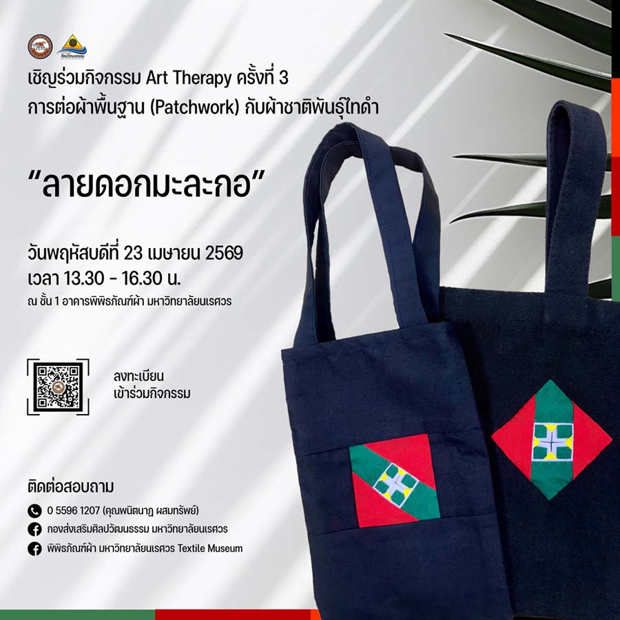 สถานที่: ณ ชั้น 1 อาคารพิพิธภัณฑ์ผ้า มหาวิทยาลัยนเรศวร (20 คน / ครั้ง)